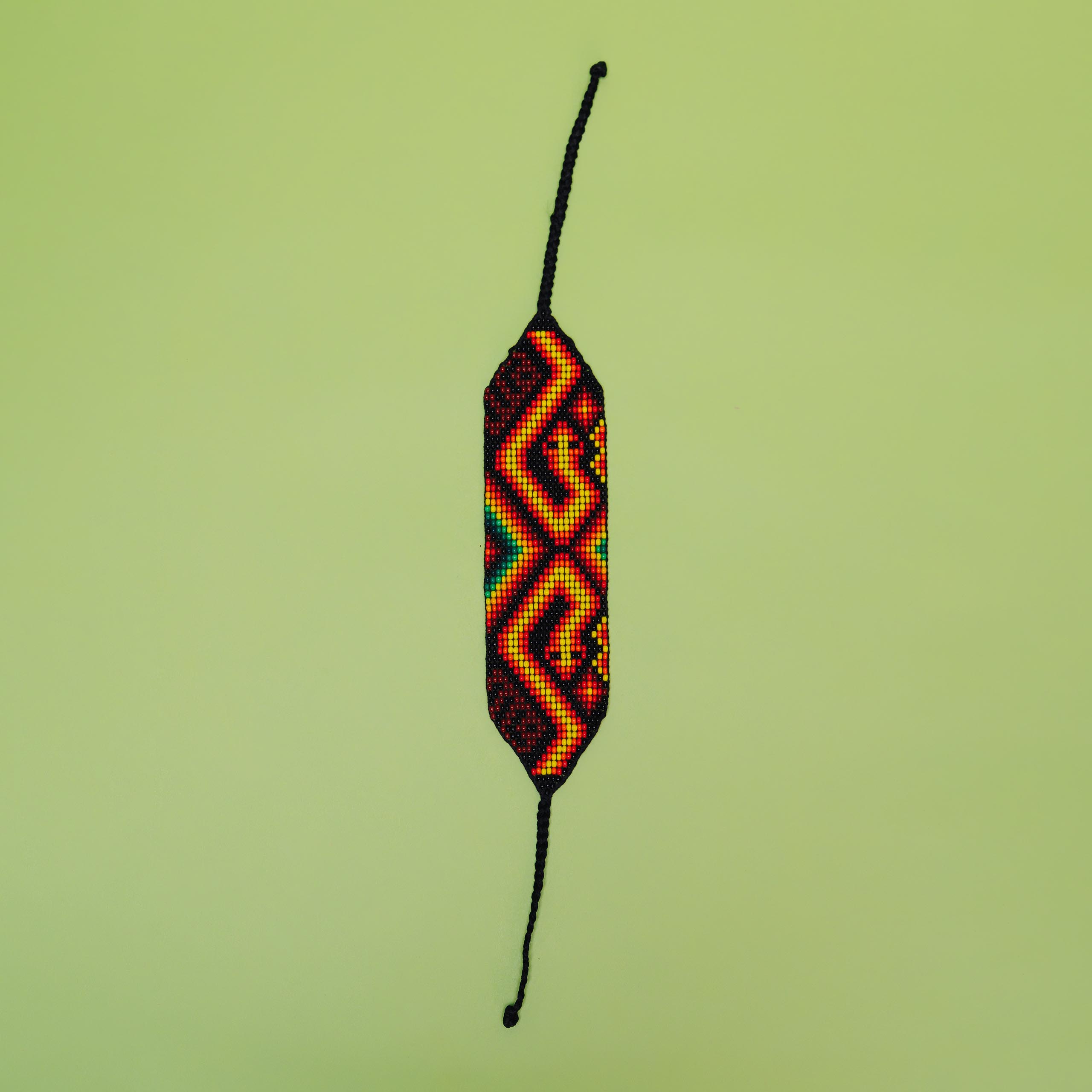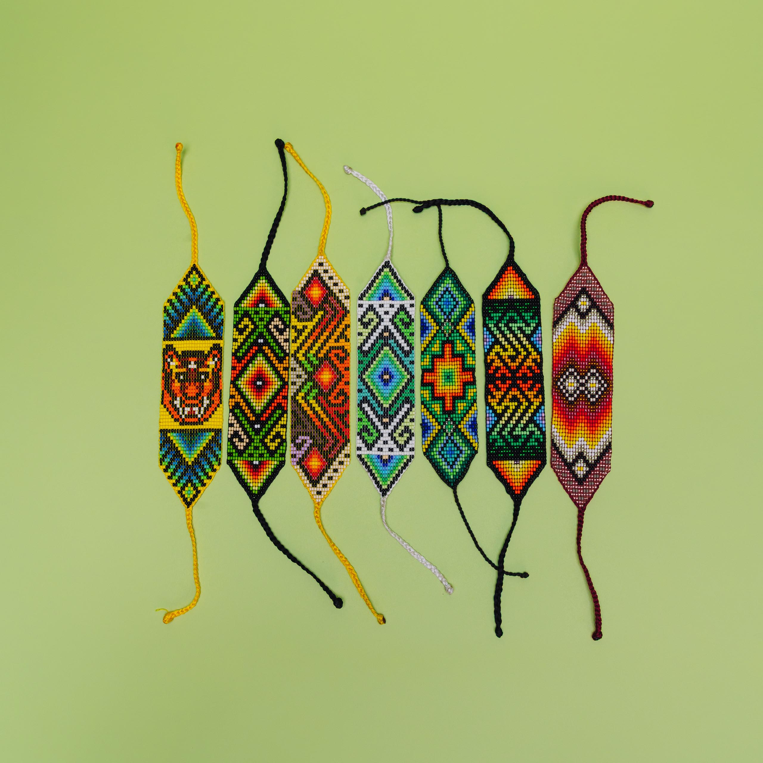Созданный в традициях народа Шипибо браслет украшен характерными геометрическими узорами, которые символизируют гармонию, защиту и связь с природой. Каждый элемент выполнен вручную, передавая аутентичность и культурное наследие Амазонии.