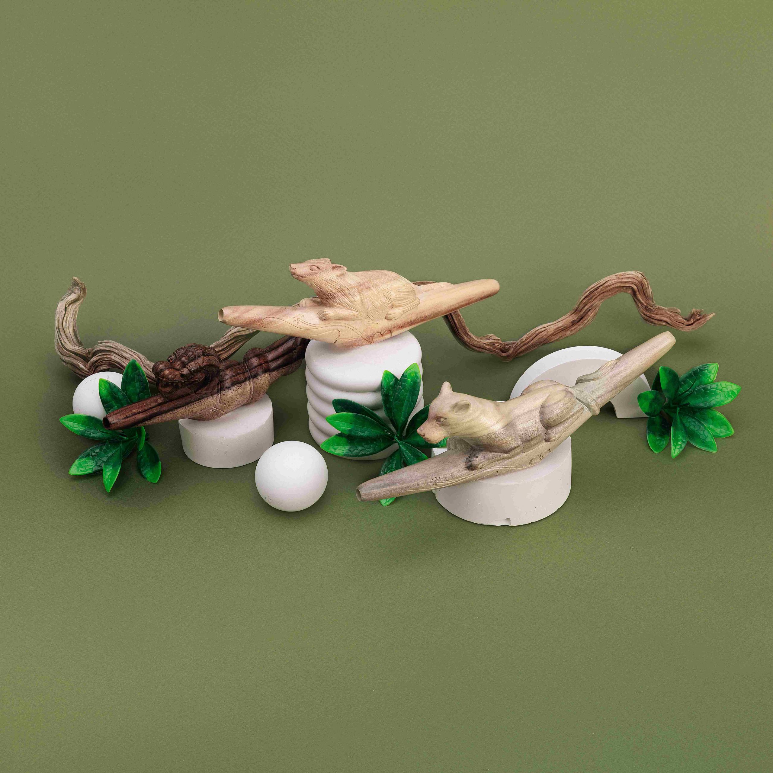 Трубка Tepi создана из цельного блока смешанных пород древесины, каждая из которых формирует неповторимый узор и оттенок. Изображение волка придаёт изделию особую энергетику, символизируя силу, интуицию и духовное лидерство.